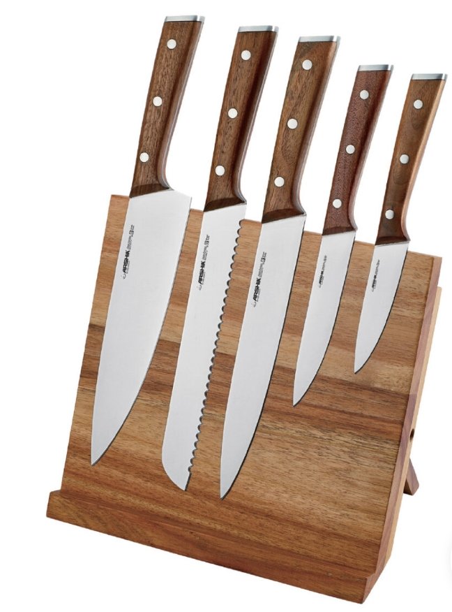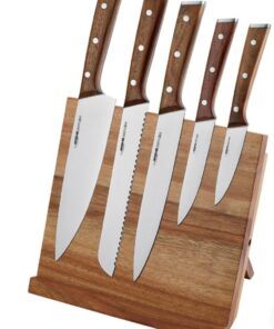 استند سكاكين فولاذ ألماني فاخر: مصنوع من فولاذ ألماني عالي الجودة لمتانة وحدّة استثنائيتين.