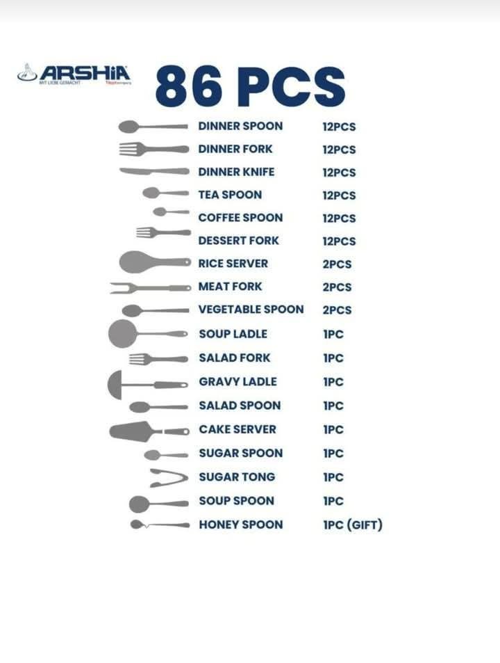 هل تبحث عن طقم أدوات مائدة يجمع بين الأناقة والجودة العالية؟ نقدم لكم طقم ARSHIA الرائع المكون من 86 قطعة!
