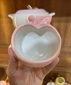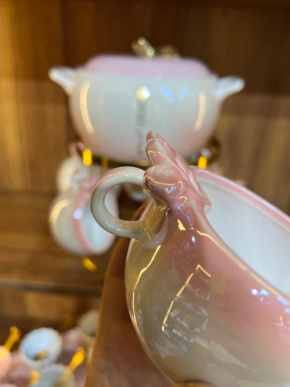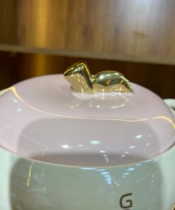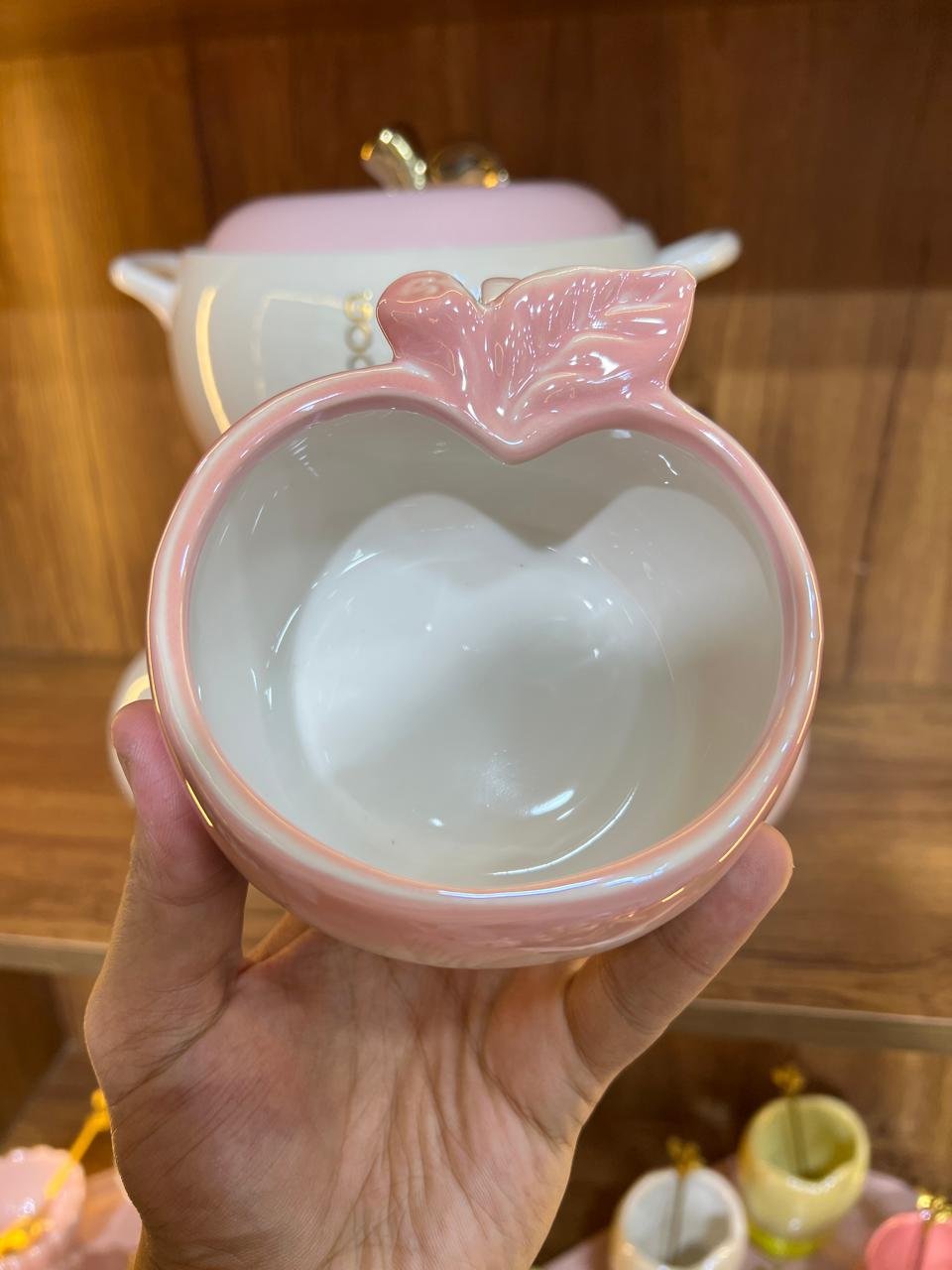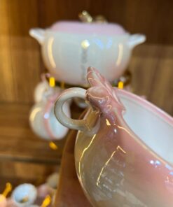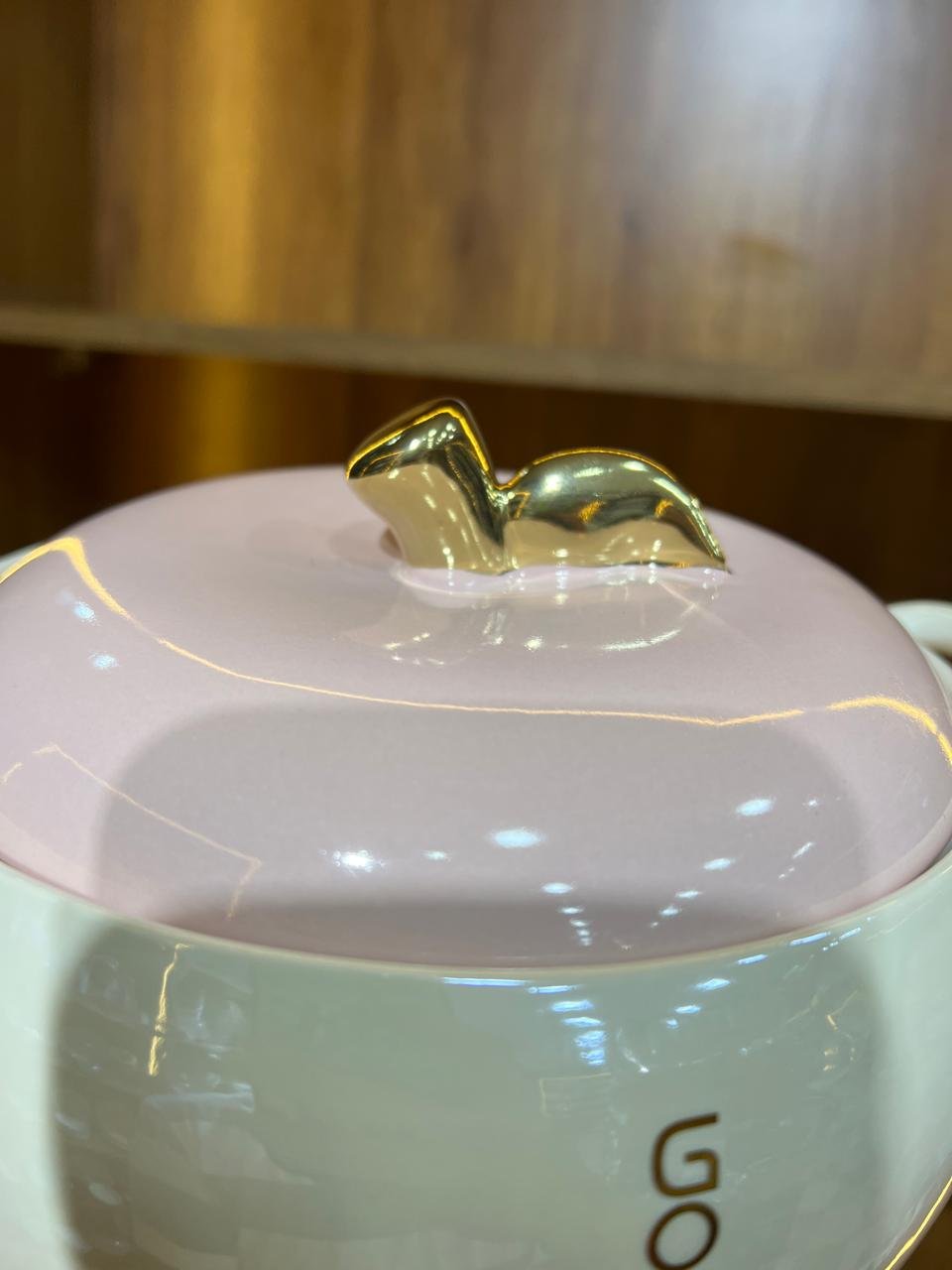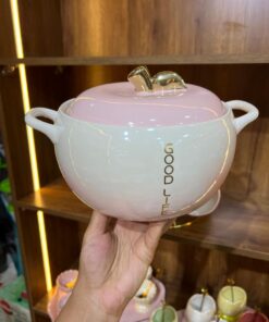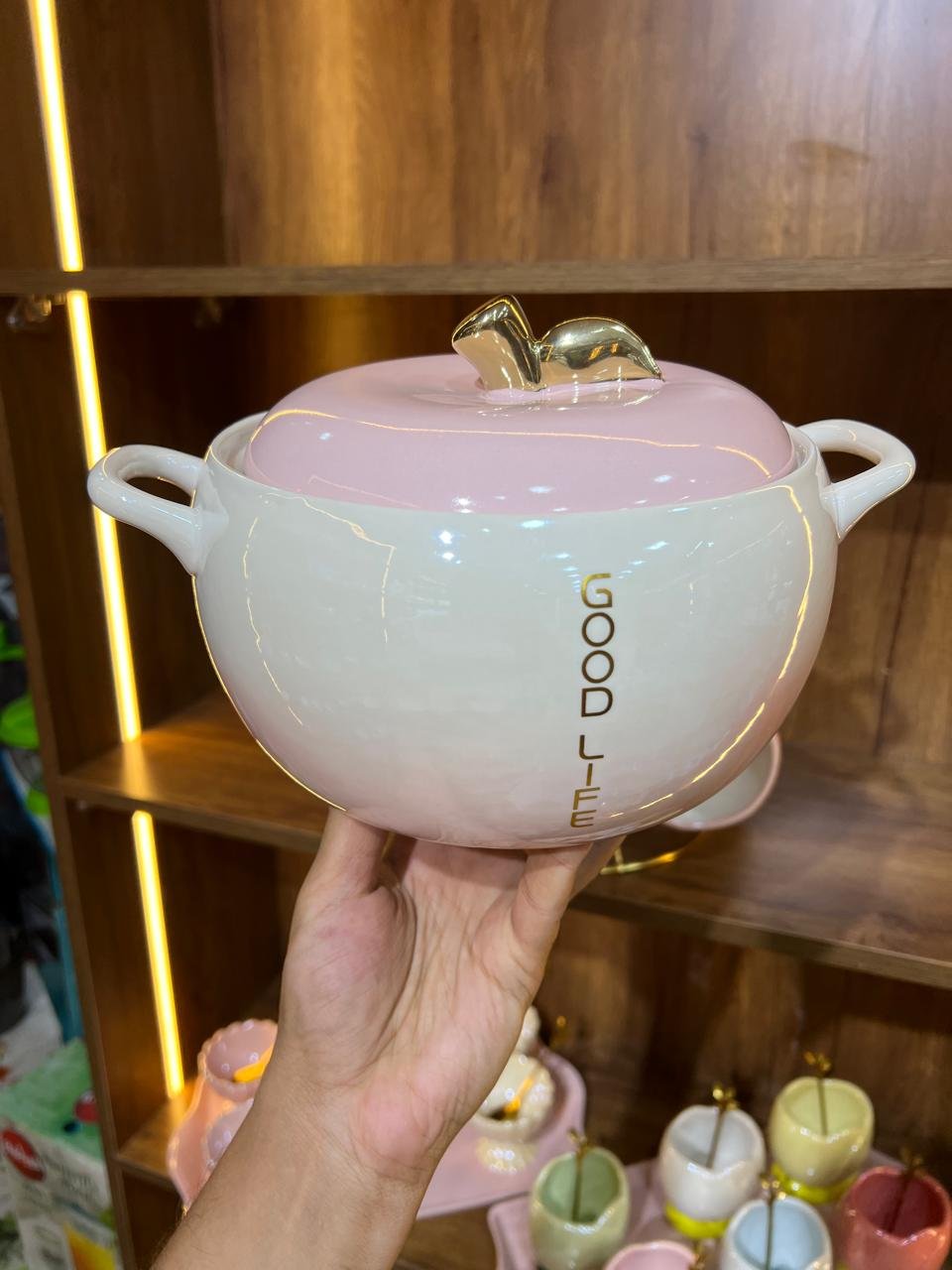 حلة شوربة بورسلين بغطاء تصميم فخم (وردي × أبيض × لمسة ذهبية)