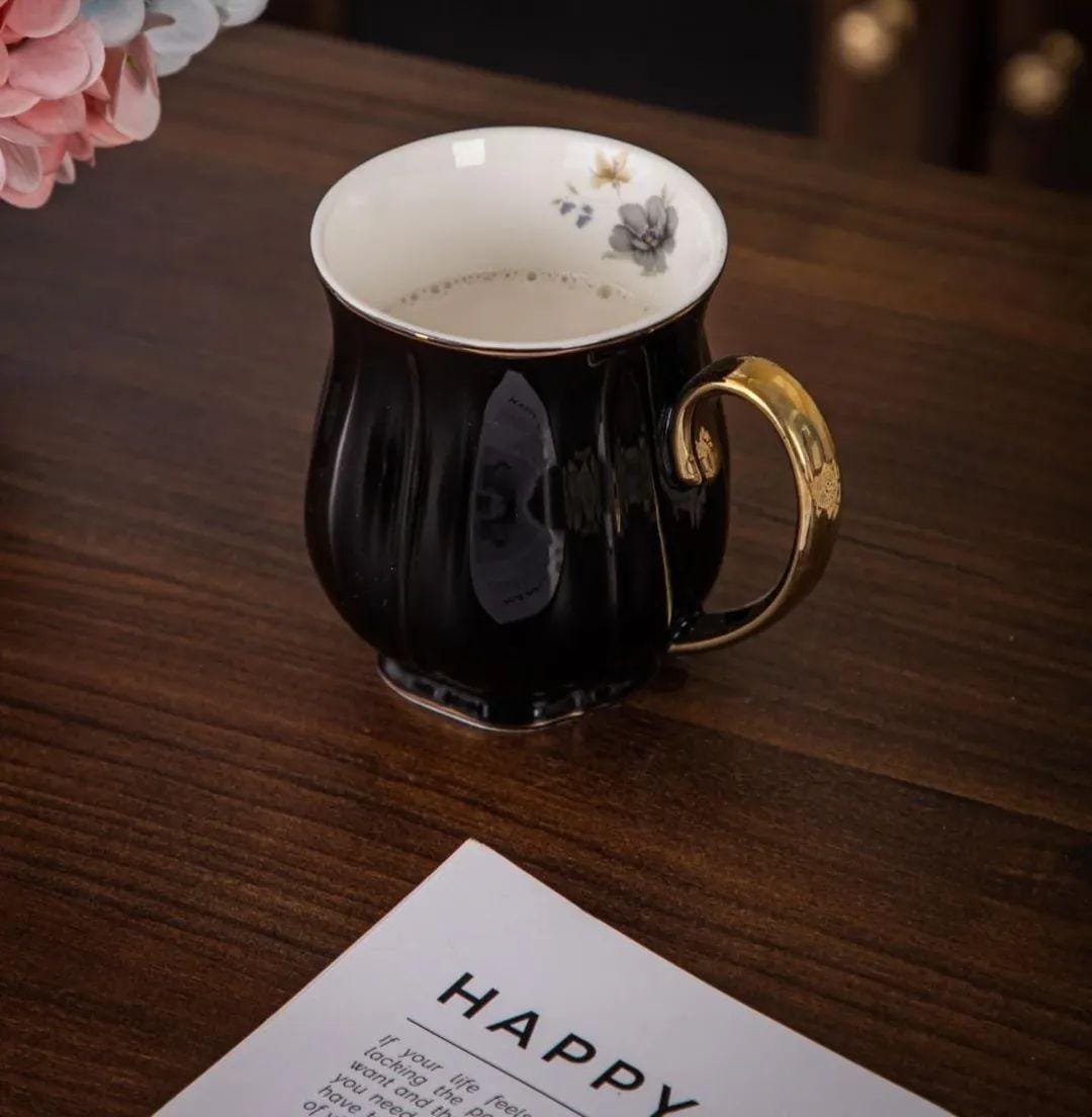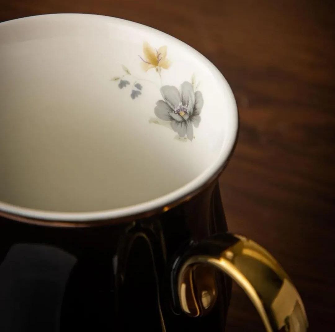 ✔️ 6 مجات بورسلين سعة 350 مل بلمسات ذهبية