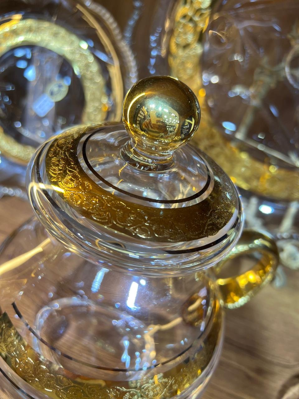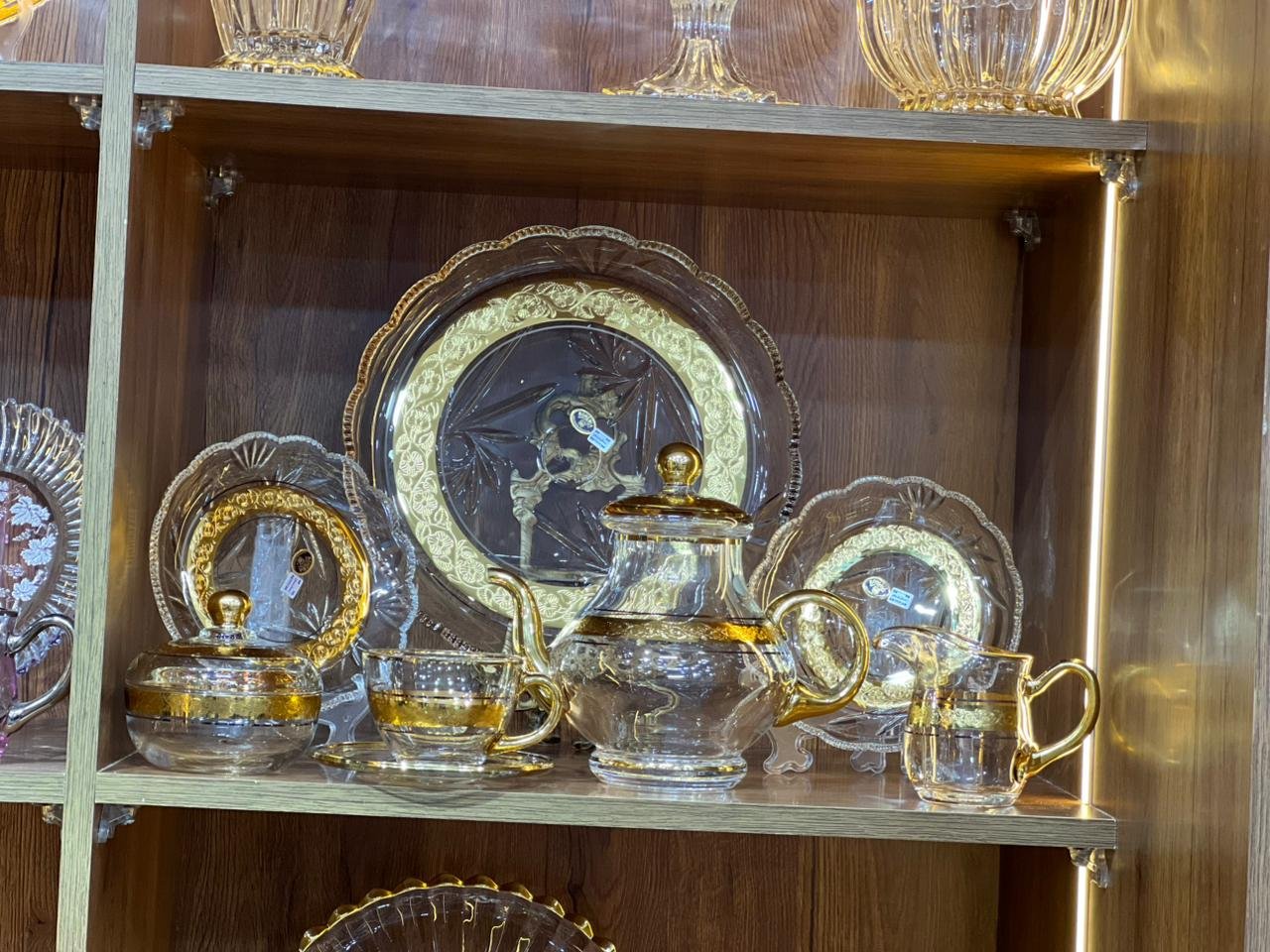 طقم شاي وجاتوه كريستال بالدهب 24قطعه