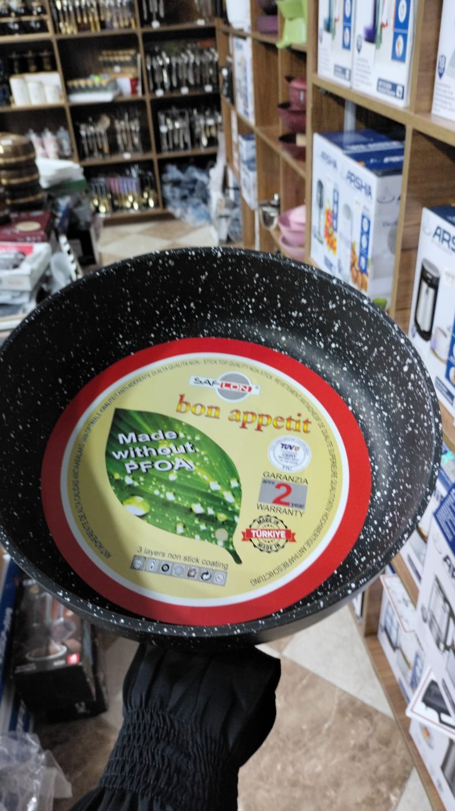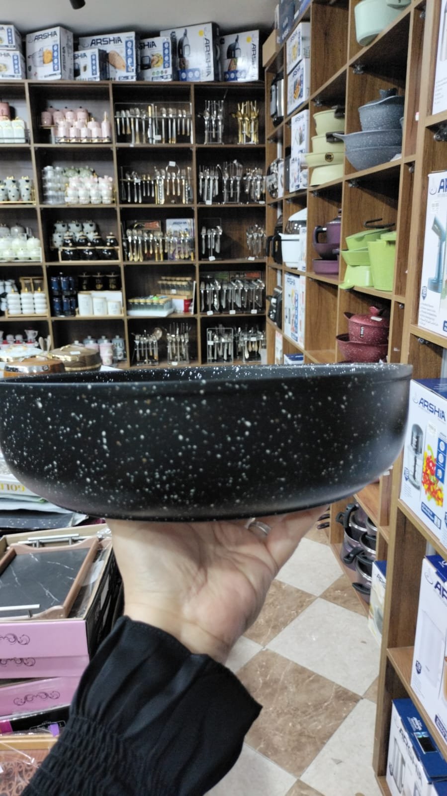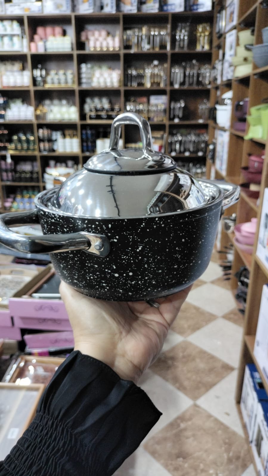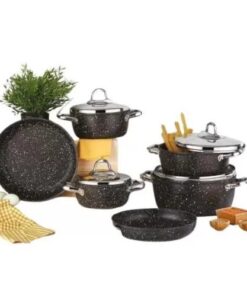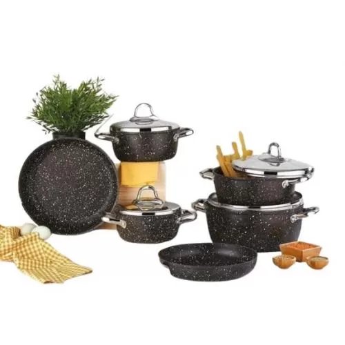 سافلون طقم جرانيت مدور يد استانلس 10 قطعة لون اسود