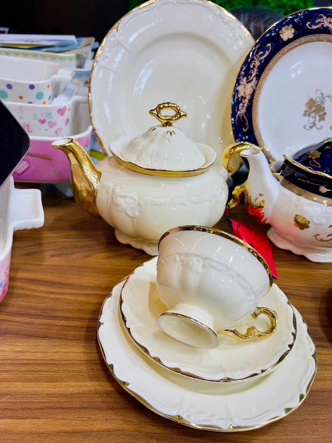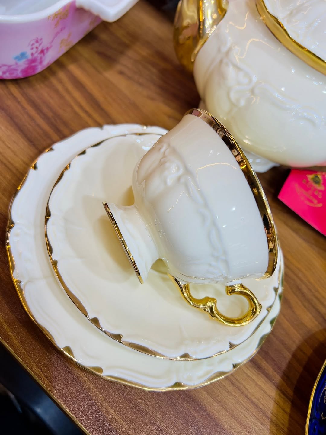 الطقم صناعة تايلاندي 🇹🇭 مُطعّم بالذَهب البارز الغير قابل للمسح 🍽️✨