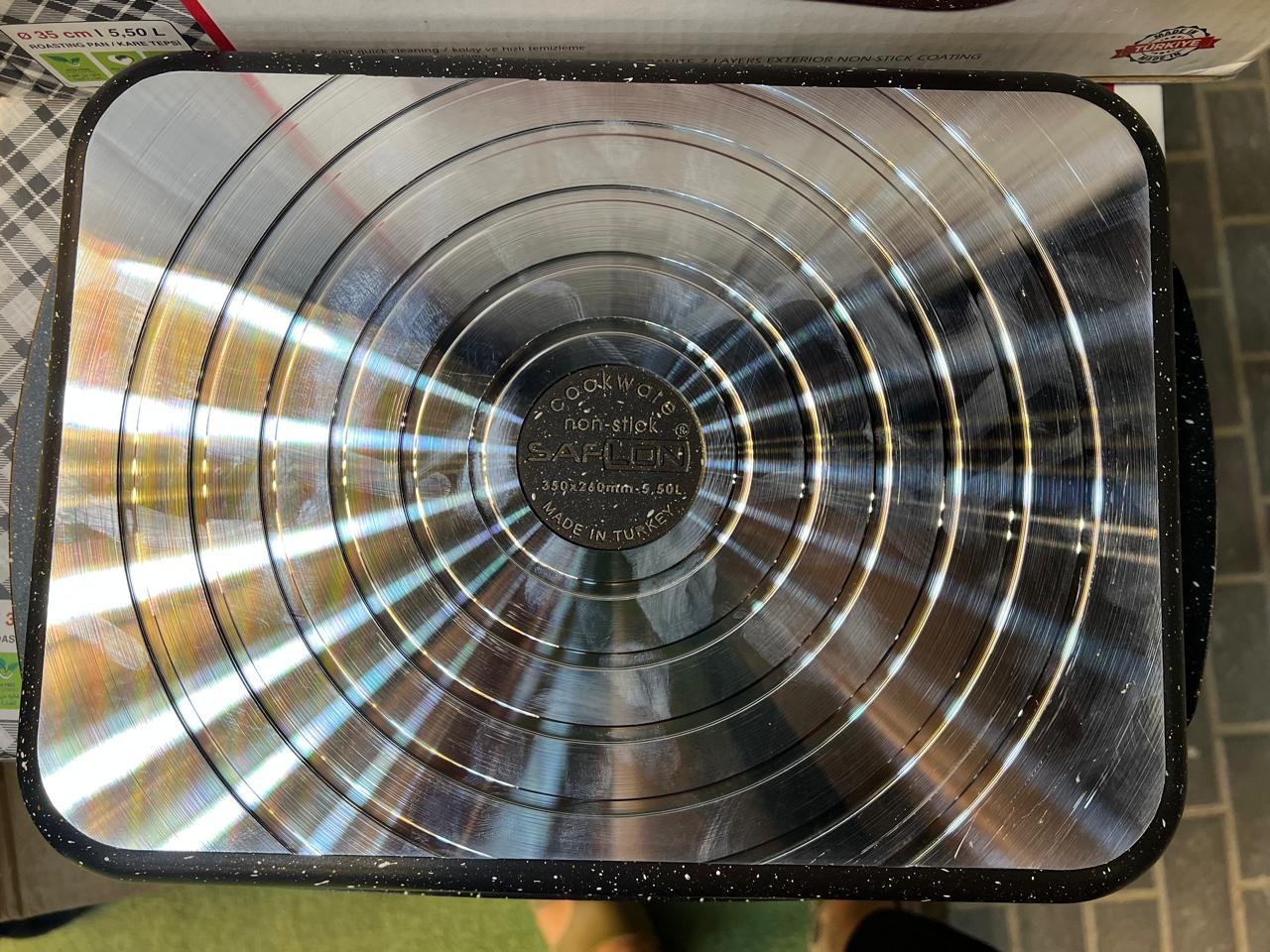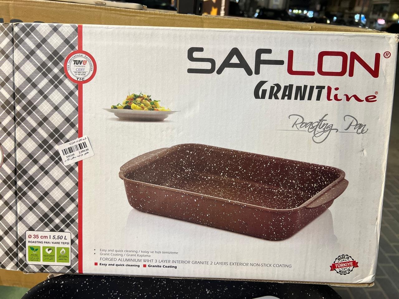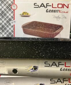 صينية تحمير أصلية من Saflon التركية بطلاء جرانيت غير لاصق وتوزيع حرارة متوازن. سعة كبيرة 5.5 لتر تناسب العزومات، متينة وسهلة التنظيف—اختيارك العملي لكل أكلات الفرن.