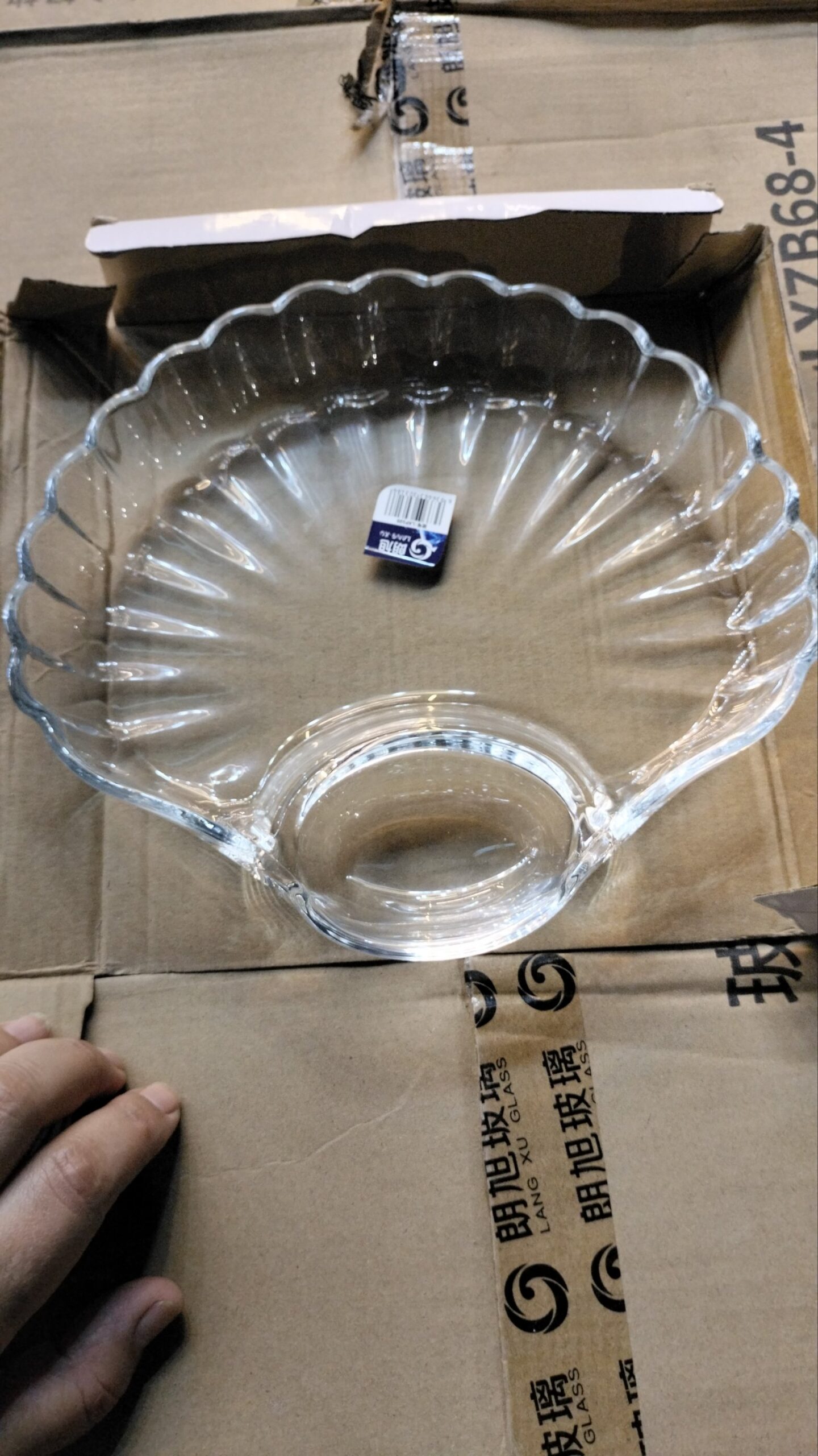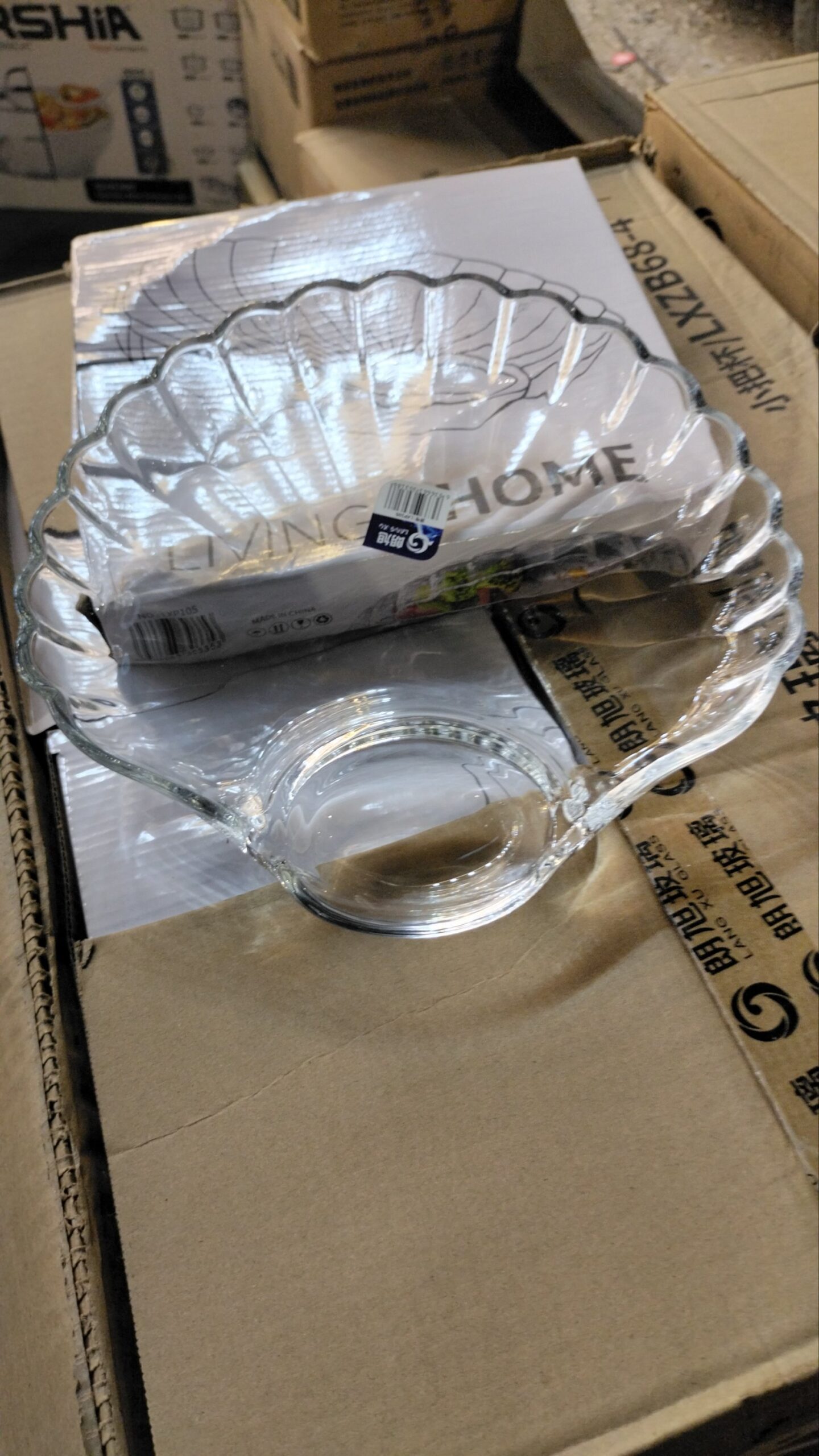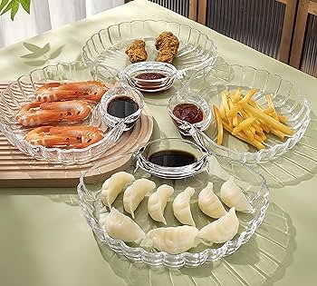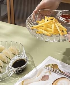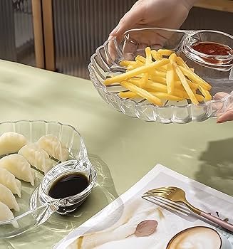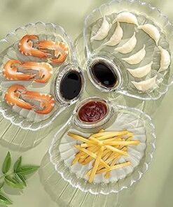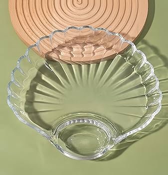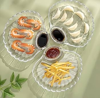 عدد 1 طبق زجاجي مقسم على شكل صدفة، ويُعرف أيضًا باسم طبق تسالي أو طبق غمس.