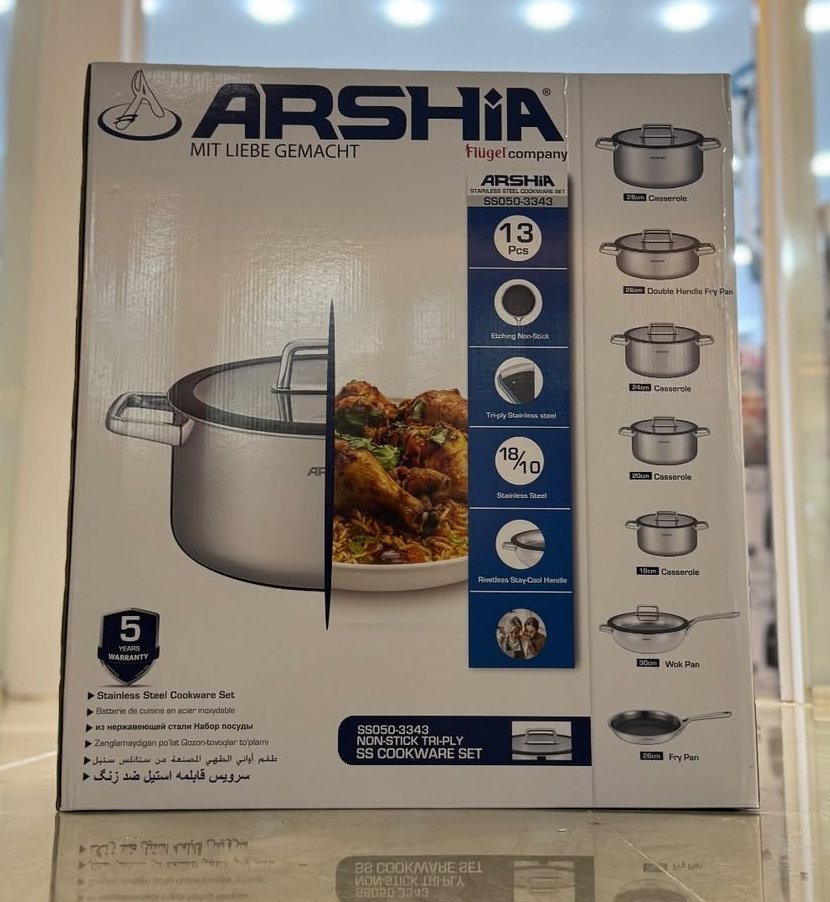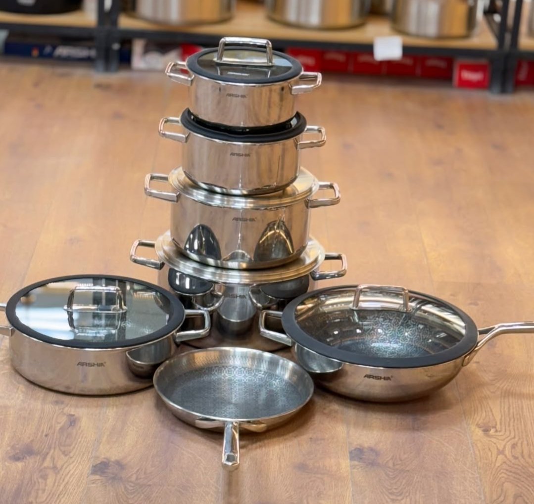 طقم استنلس arshia ارشيا قلبه غير قابل للالتصاق 13قطعه
