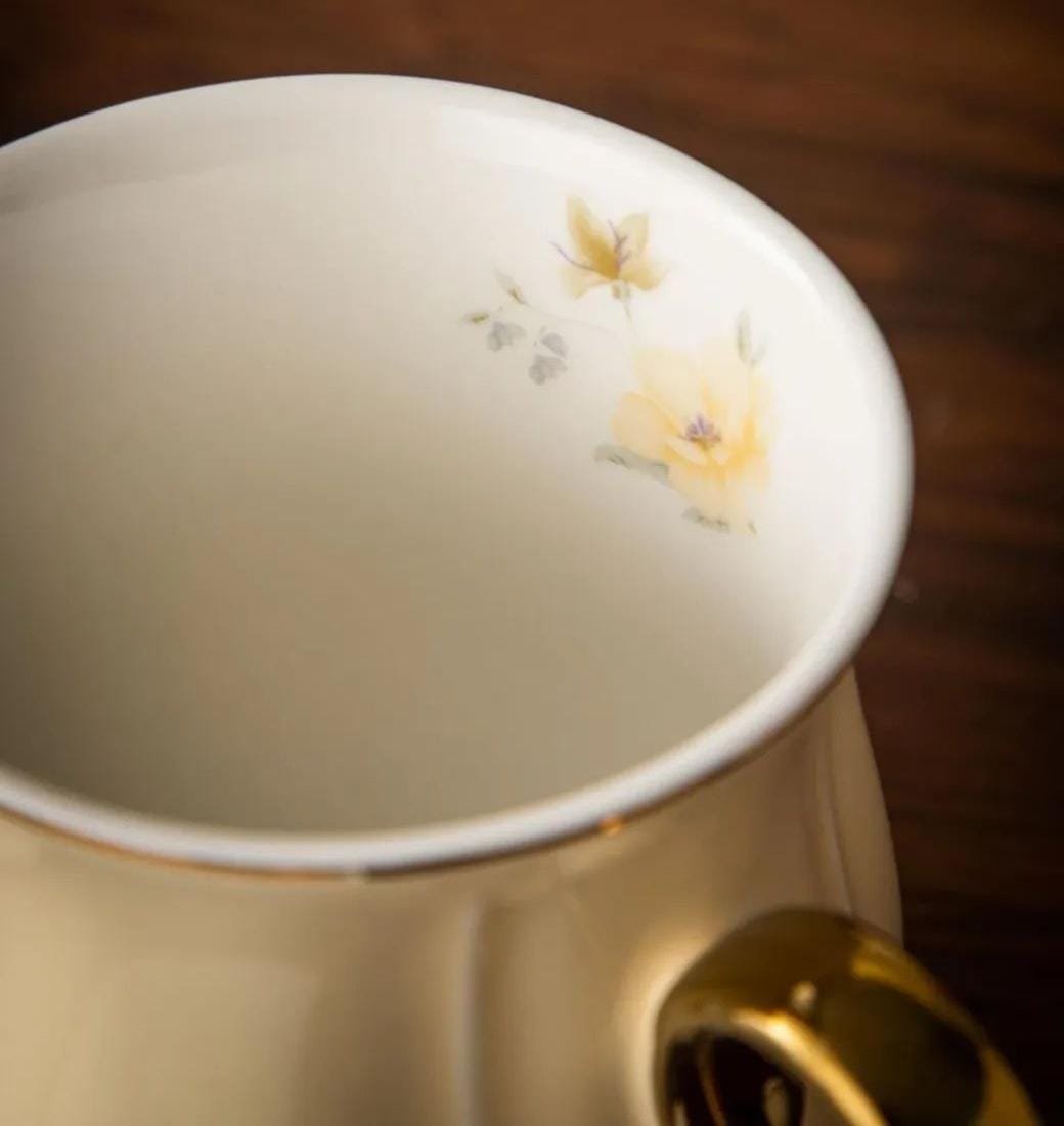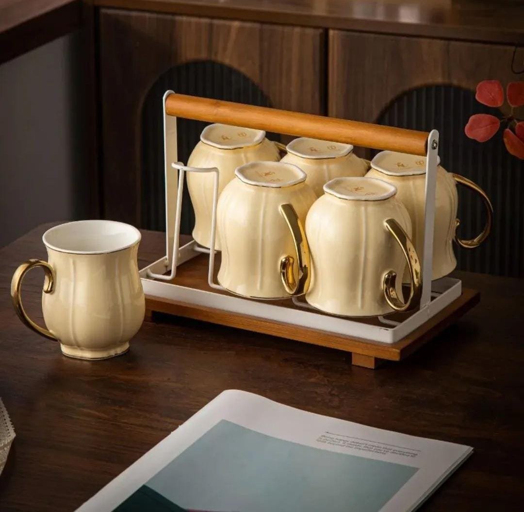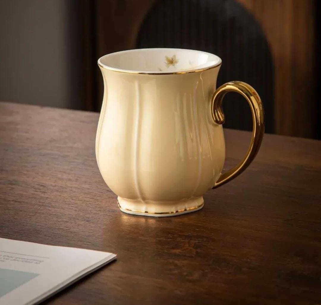 ✔️ 6 مجات بورسلين سعة 350 مل بلمسات ذهبية