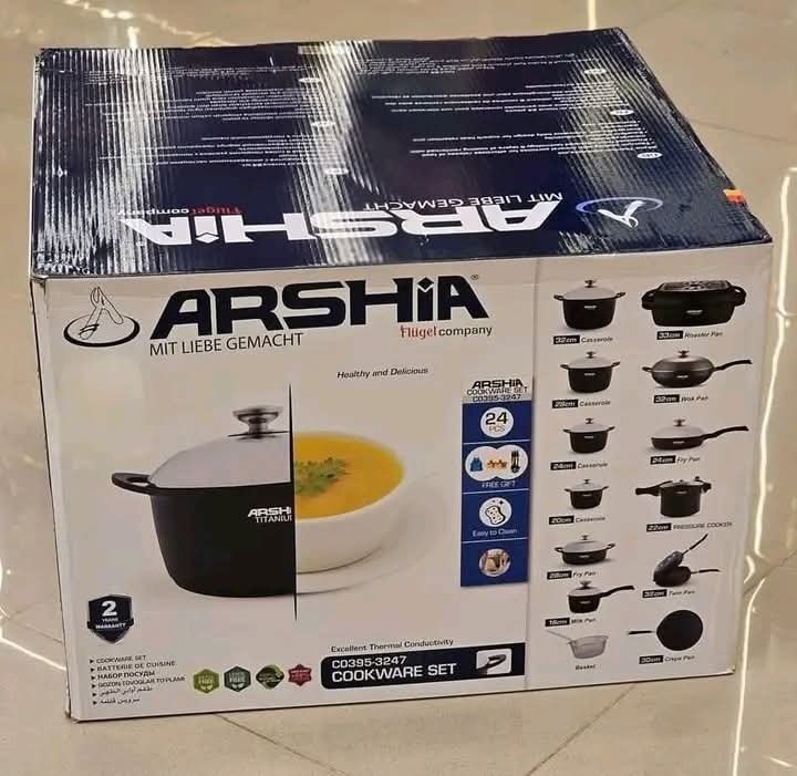 طقم حلل تيتانيوم ارشيا المانى الاصليه 24 قطعه الجامبو
