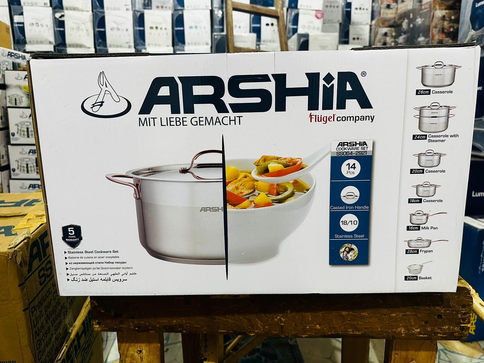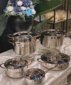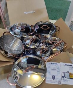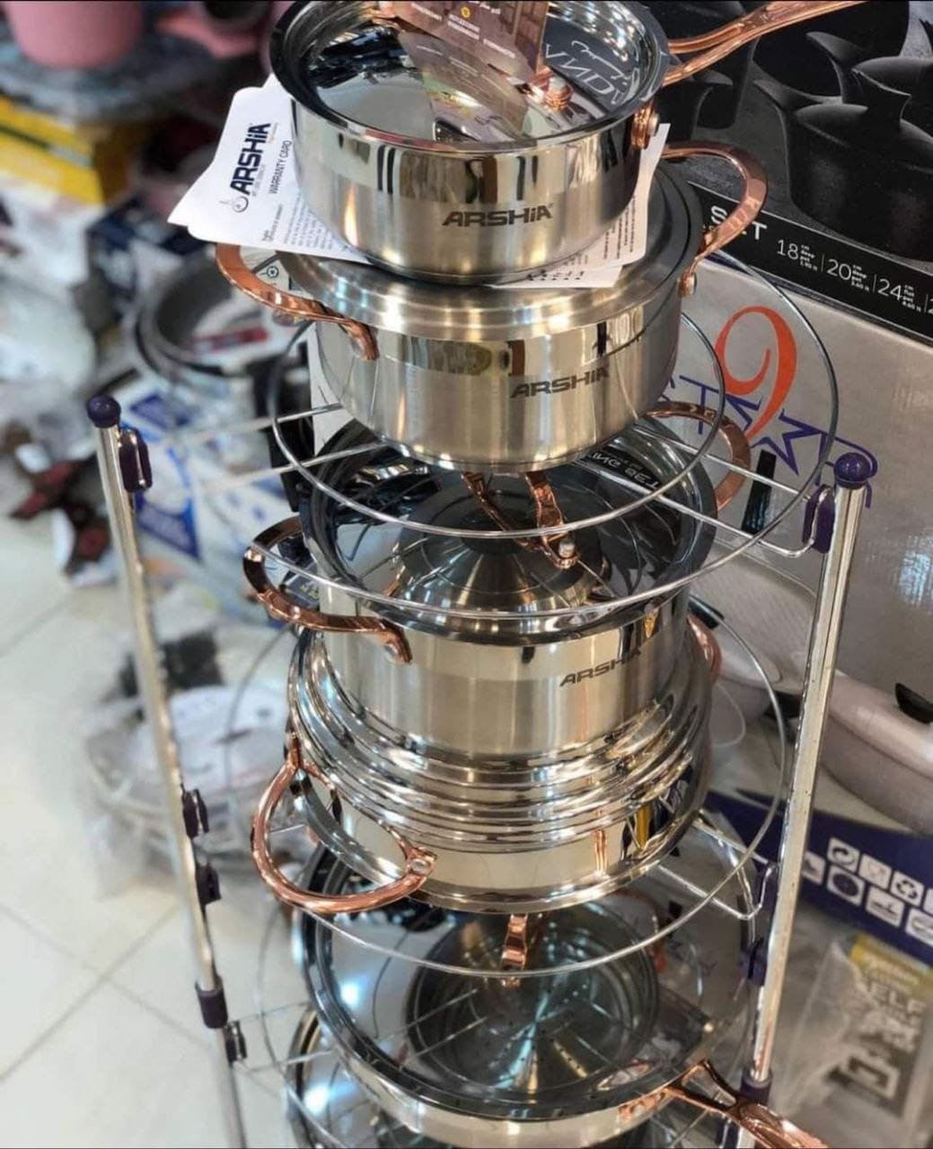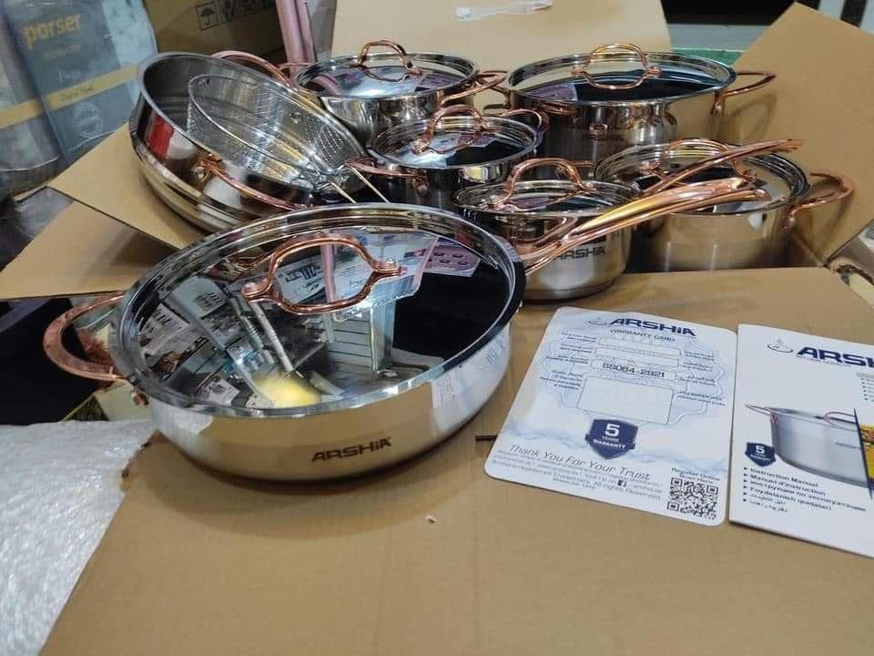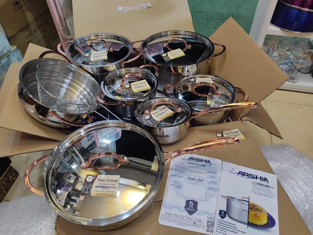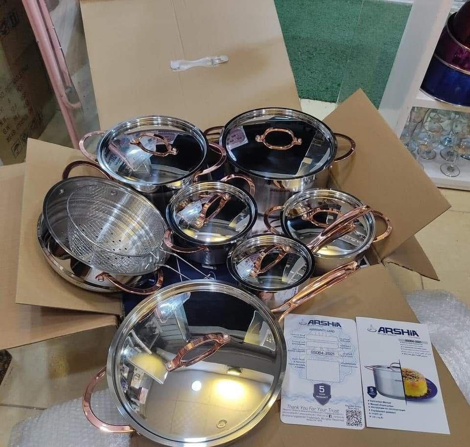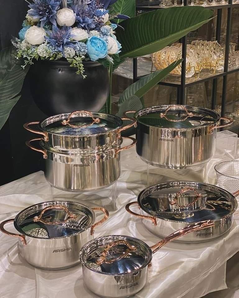 طقم حلل ستيل ارشيا 14قطعه يد روز جولد خططططير تصميمه يجنن وشيك اوي❤️❤️👇