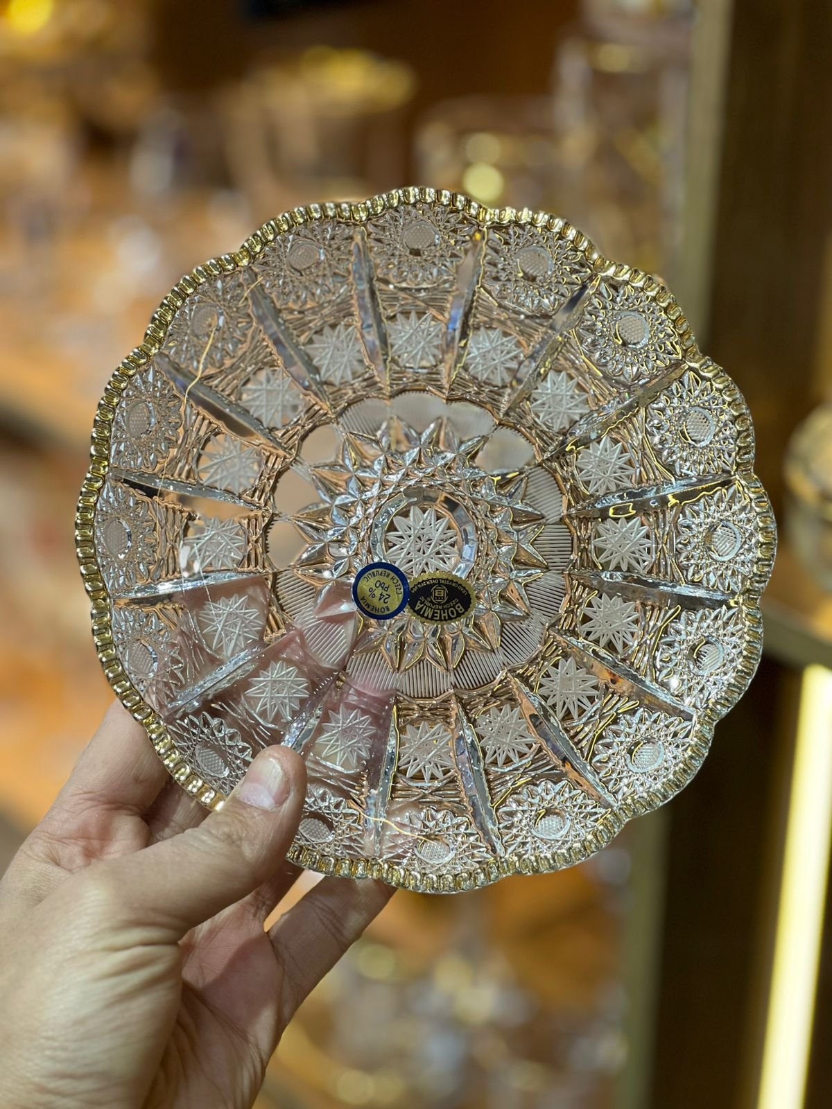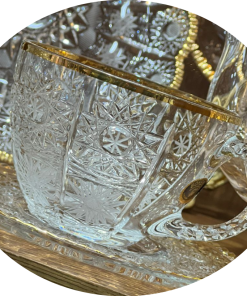 طقم شاي وجاتوه (24 قطعة) من الكريستال البوهيمي الأصلي المرصع بالدهب