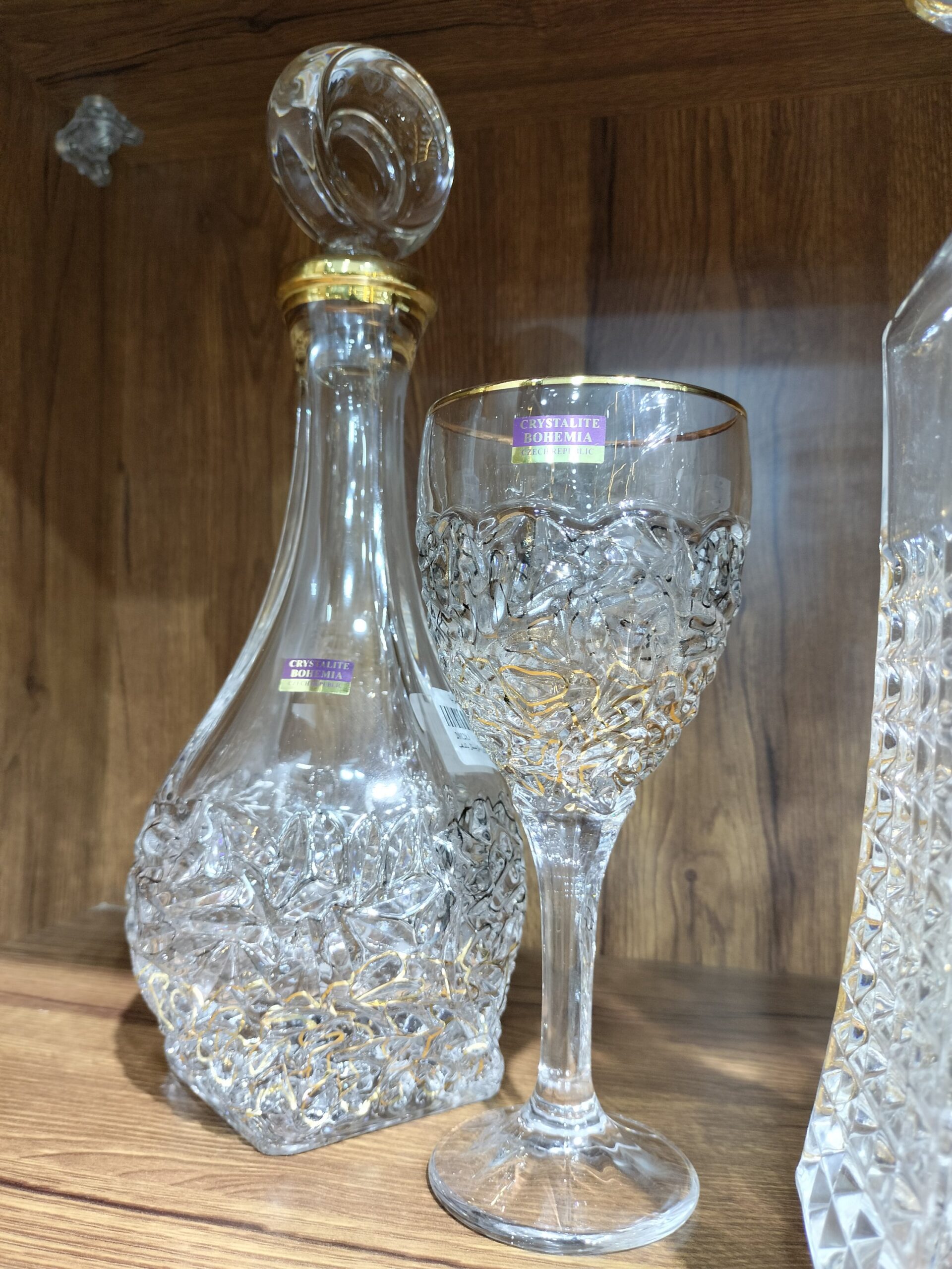 أضف لمسة من الأناقة والفخامة إلى منزلك مع طقم الكريستال البوهيمي الرائع. هذا الطقم يتكون من 7 قطع مميزة، مصممة بحرفية عالية لتناسب ذوقك الرفيع.
