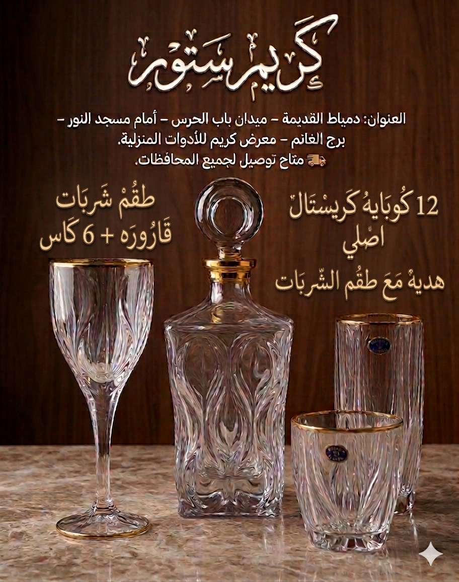 كريم ستور بيعمل “فرقيعة” وهيعملك صدمة فخامة: طقم الشربات الـ 7 قطع الأصلي، ومعاه هدية فورية 12 قطعة كوبايات كريستال بوهيمي أصلي! 😍