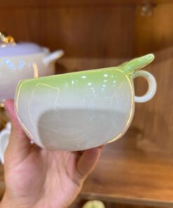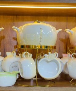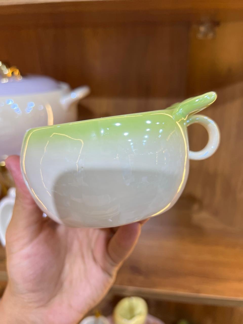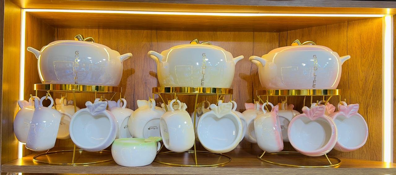 طقم شوربة كامل باللون الفصدقي مع استند ذهبي