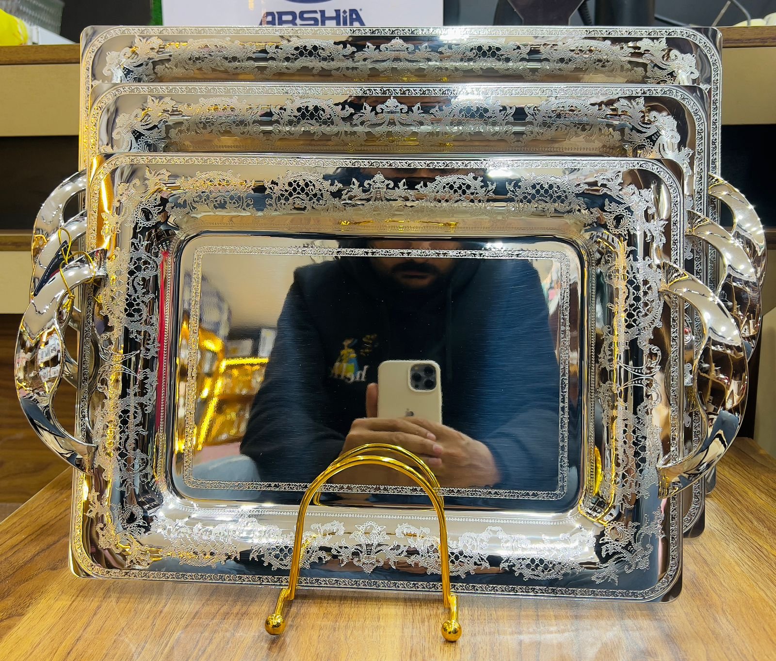طقم صواني تقديم ارشيا فضي (3قطع)