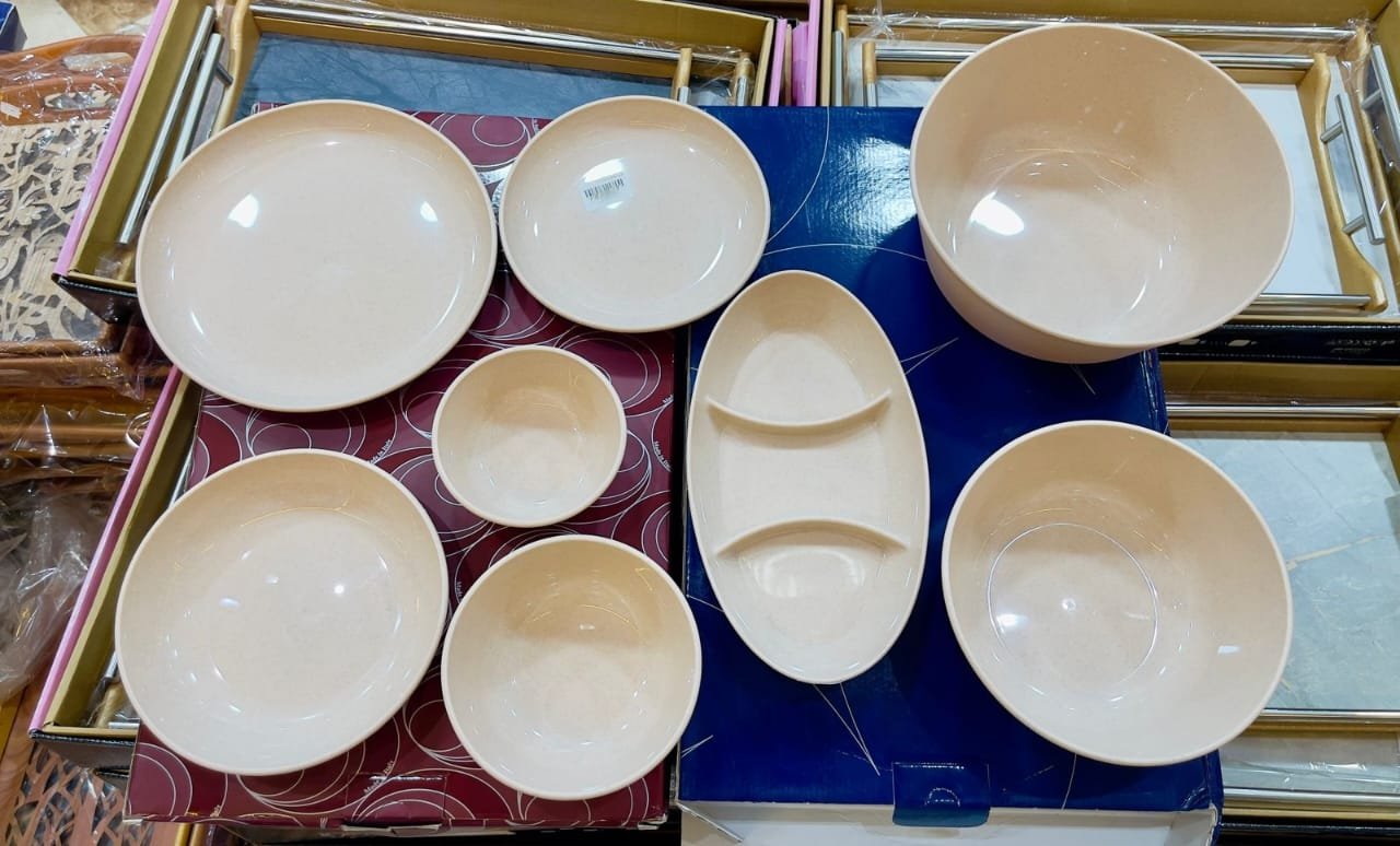 طقم عشاء متوفر بألوان رائعة وخامة ذات شكل رخامى عالية الجودة