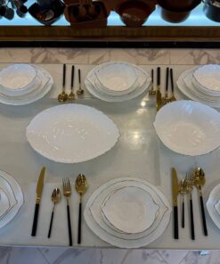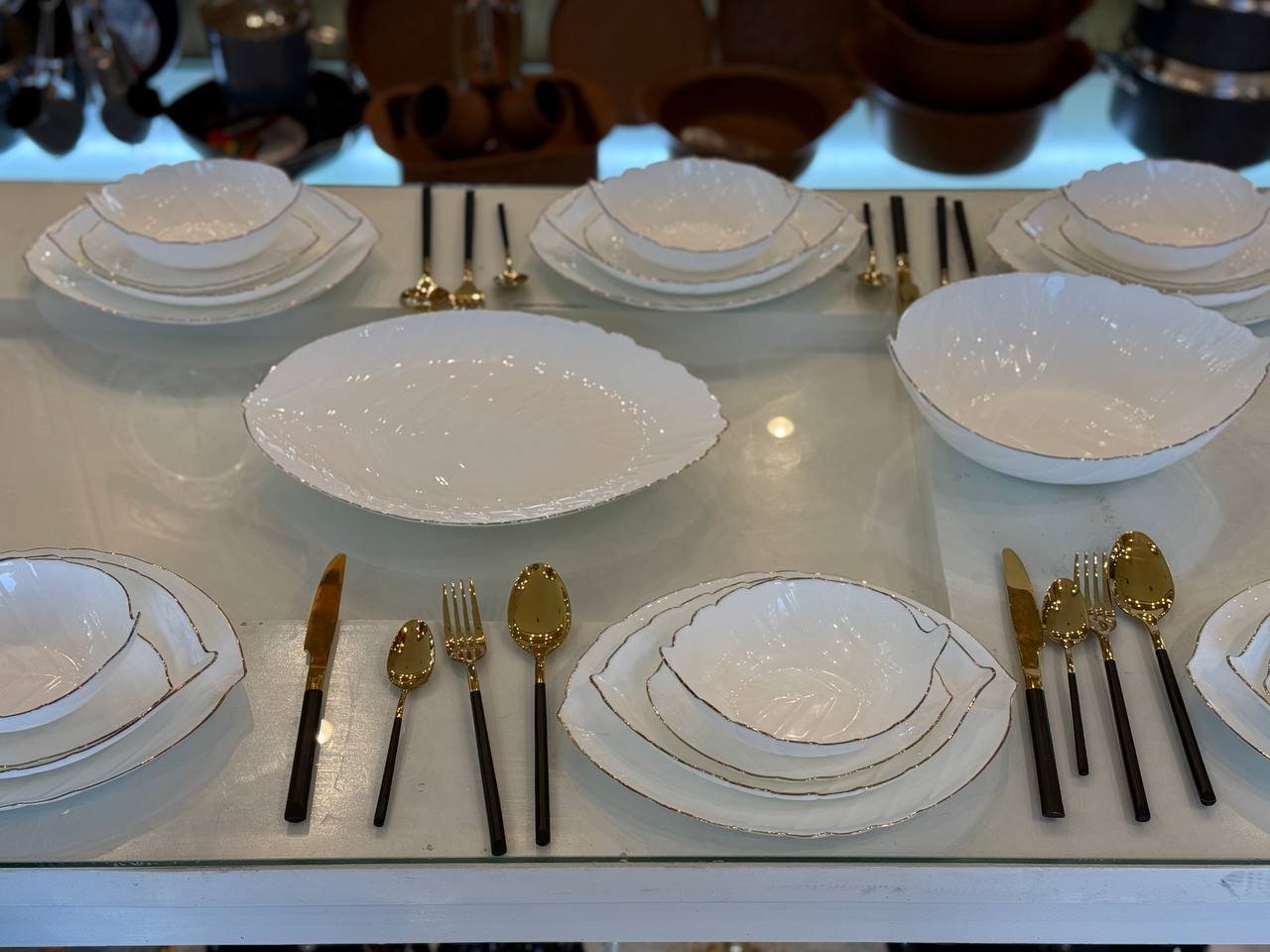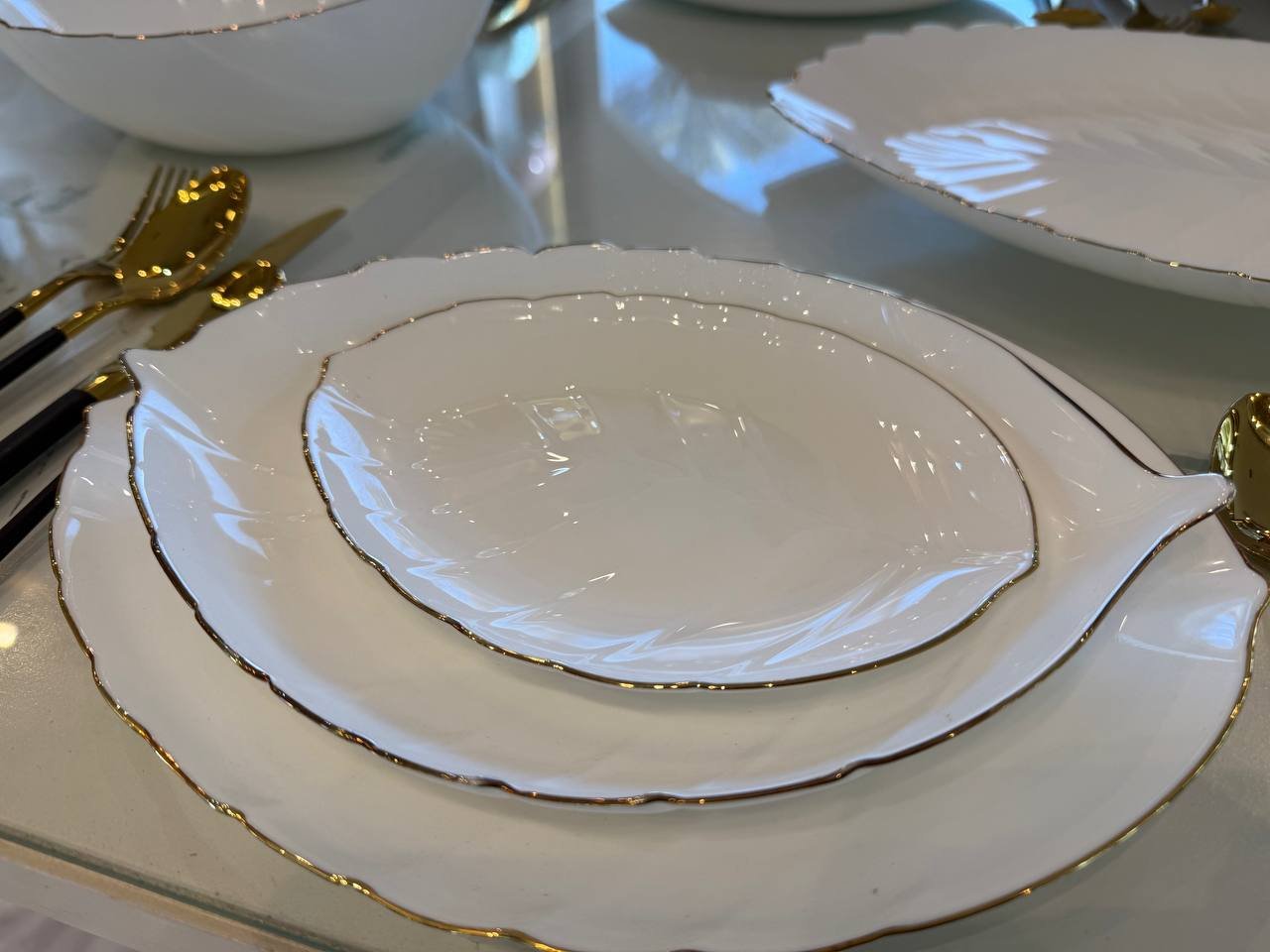 طقم عشاء 26 قطعة، تصميم أنيق ومميز على شكل ورق شجر. يضيف لمسة من الفخامة إلى مائدتك.
