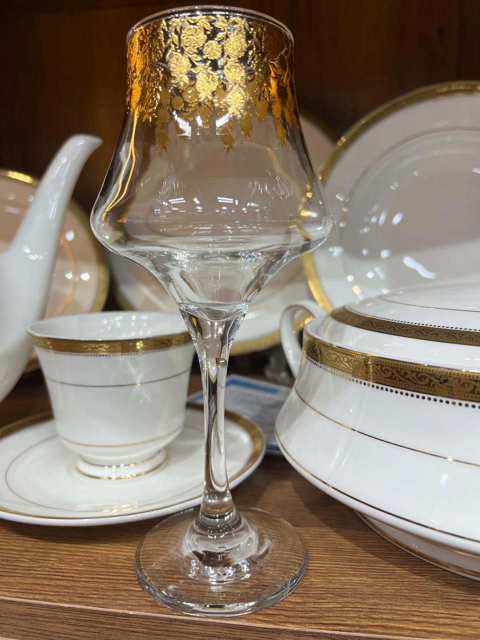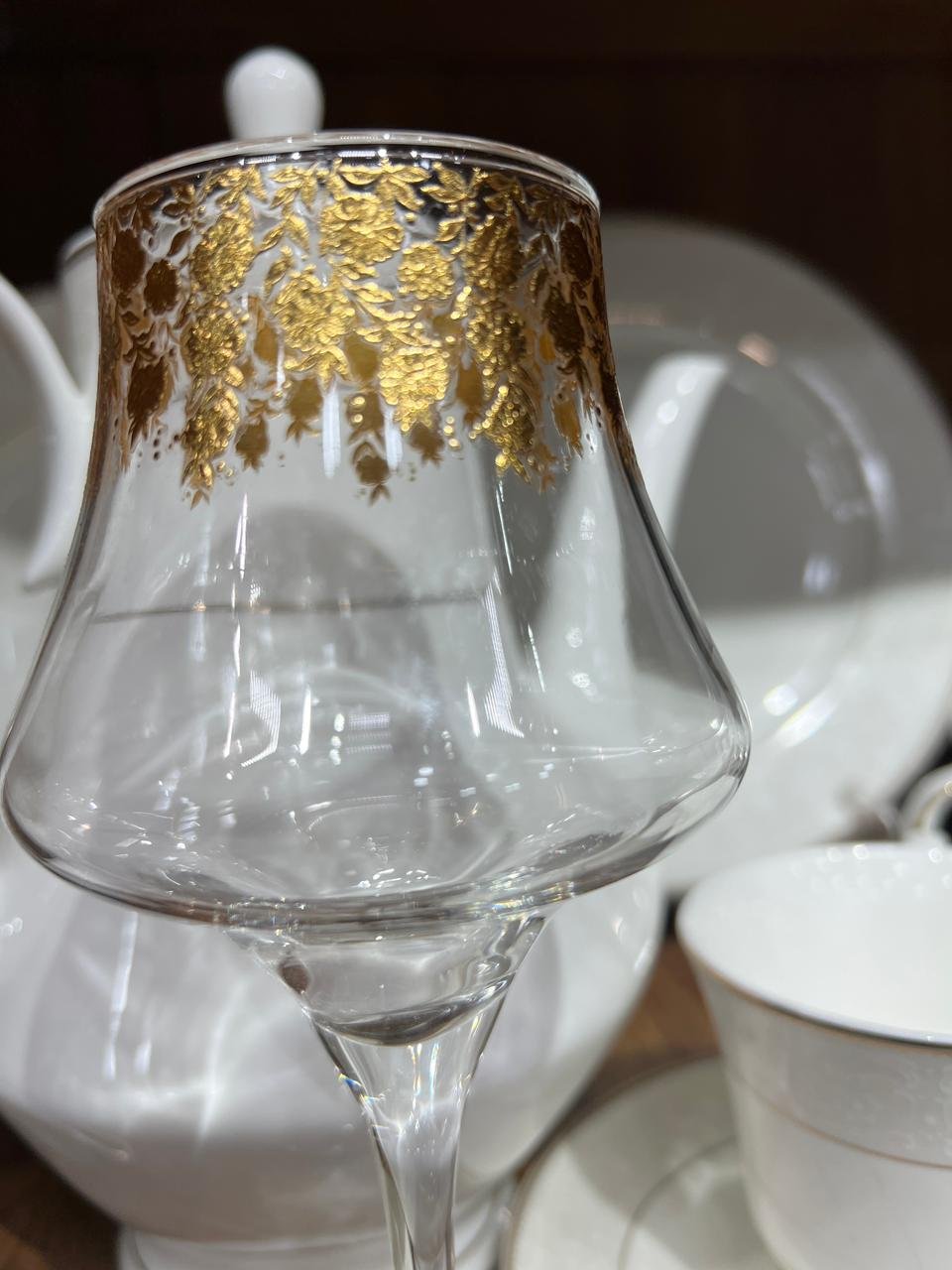 الكاس عليه شغل بالديكلات الدهبي
