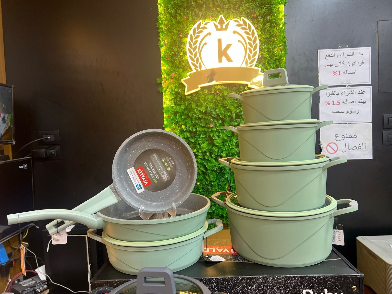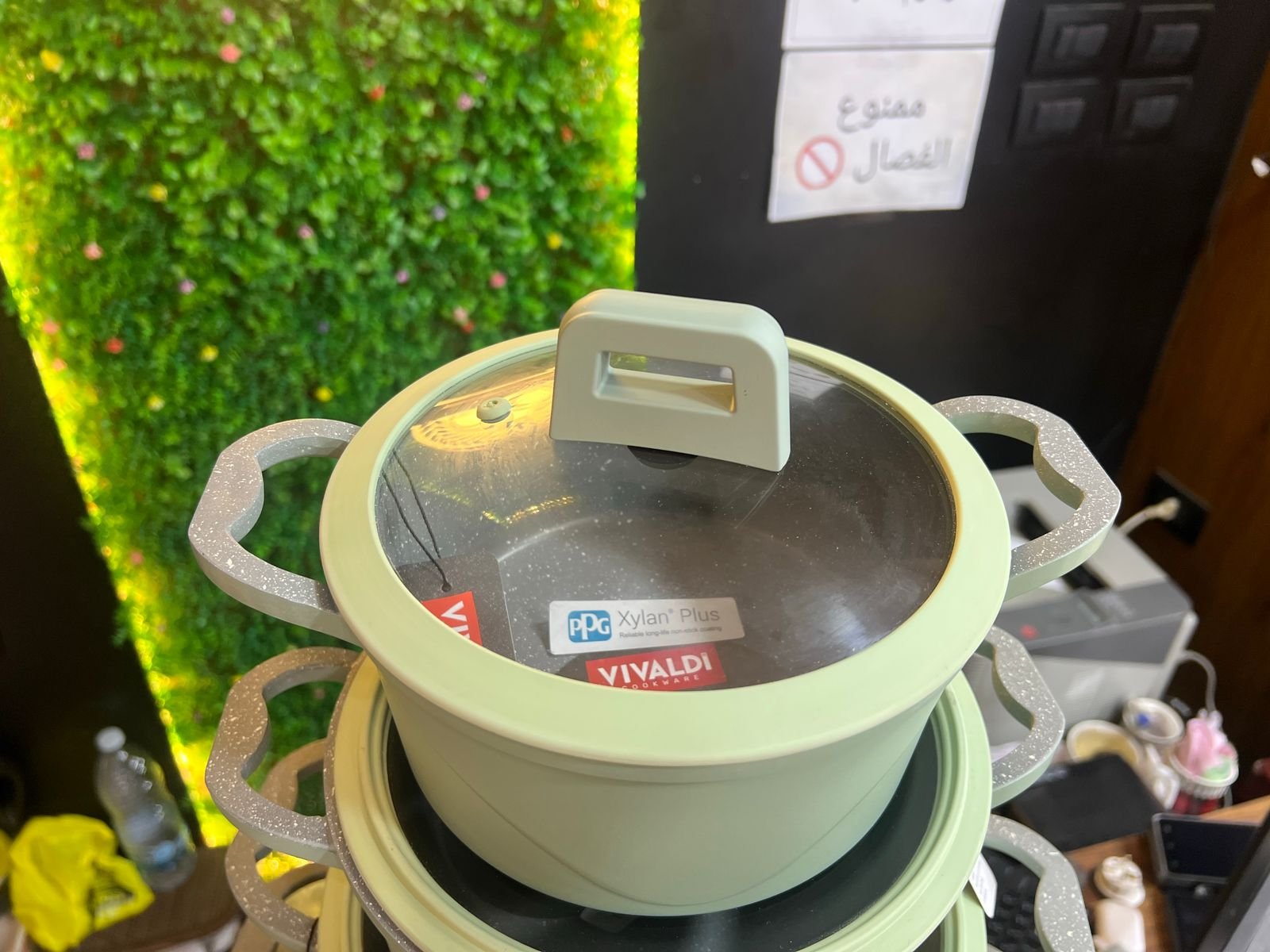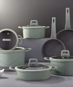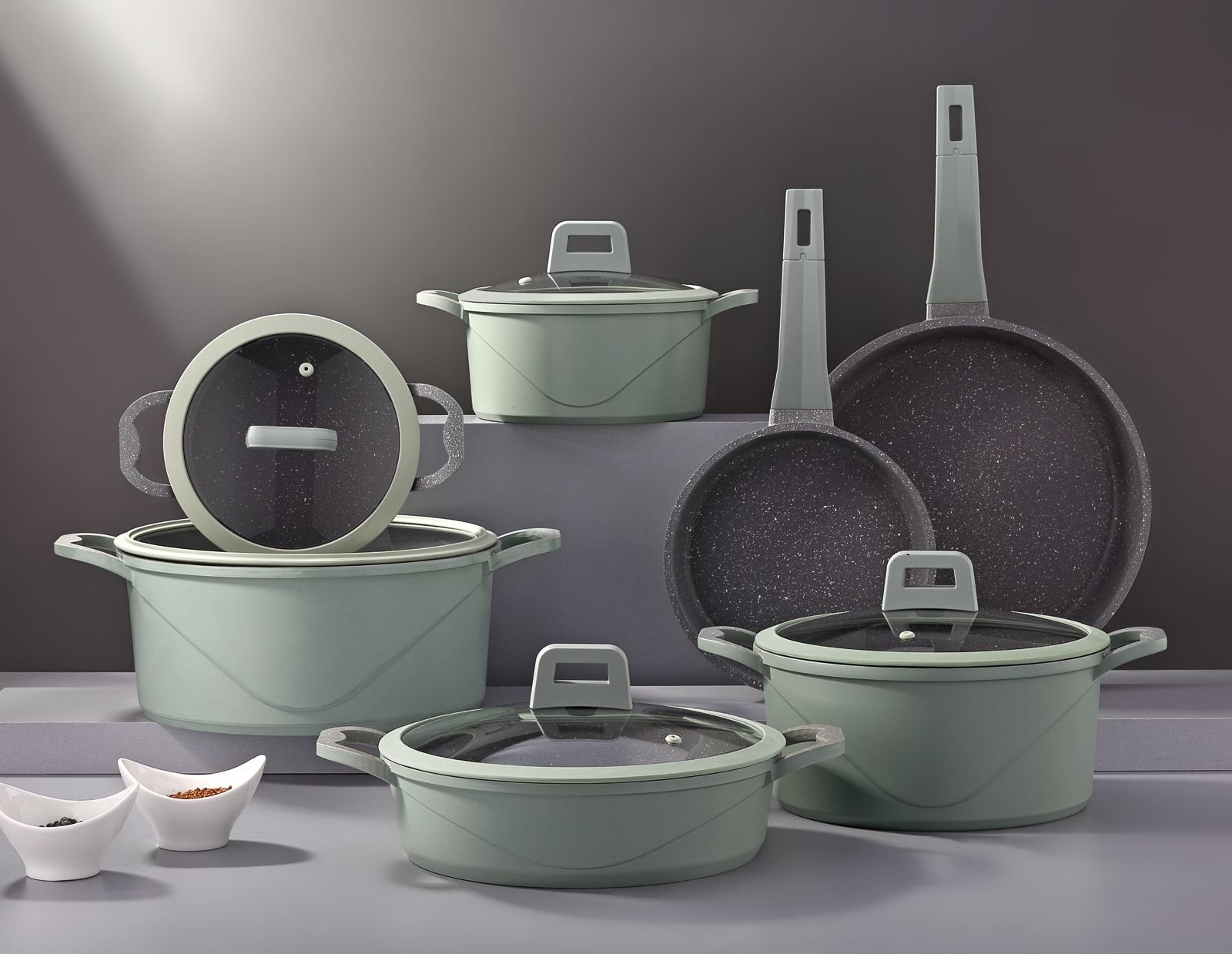 ڤيڤالدي طقم حلة جيرانيت روبي دايكاست 12قطعة (اللون الفصدقي)