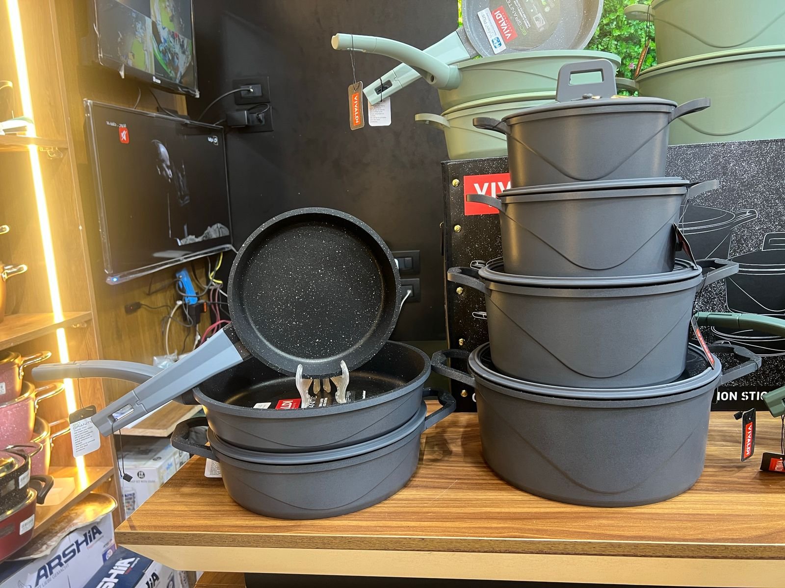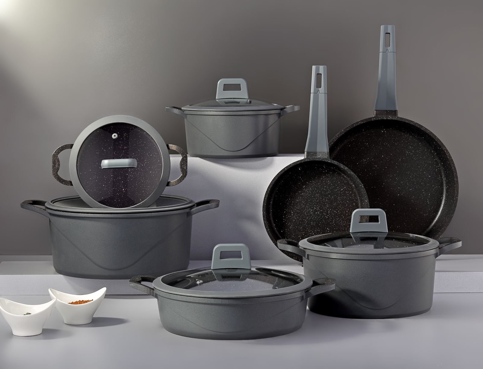 ڤيڤالدي طقم حلة جيرانيت روبي دايكاست 12قطعة (اللون الرومادي)