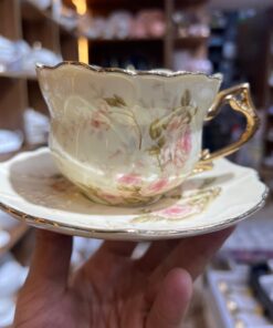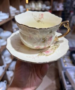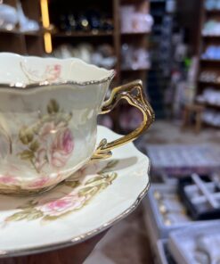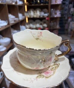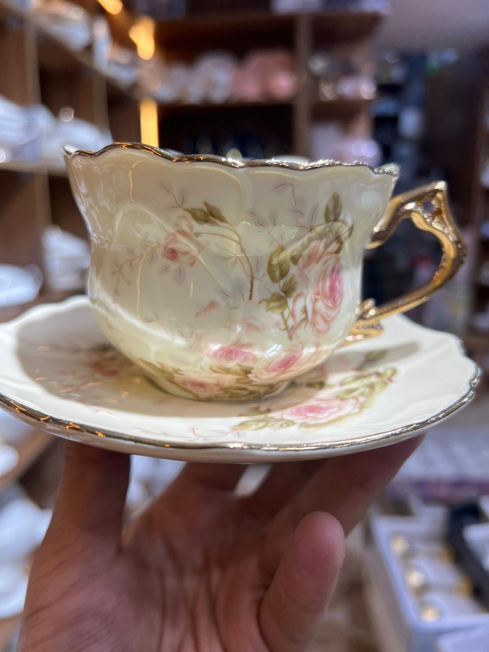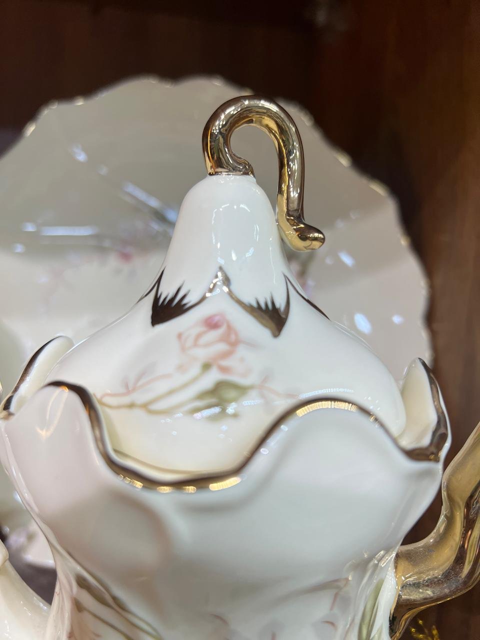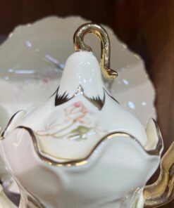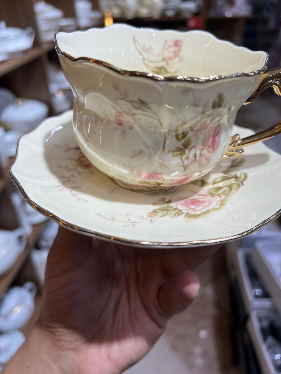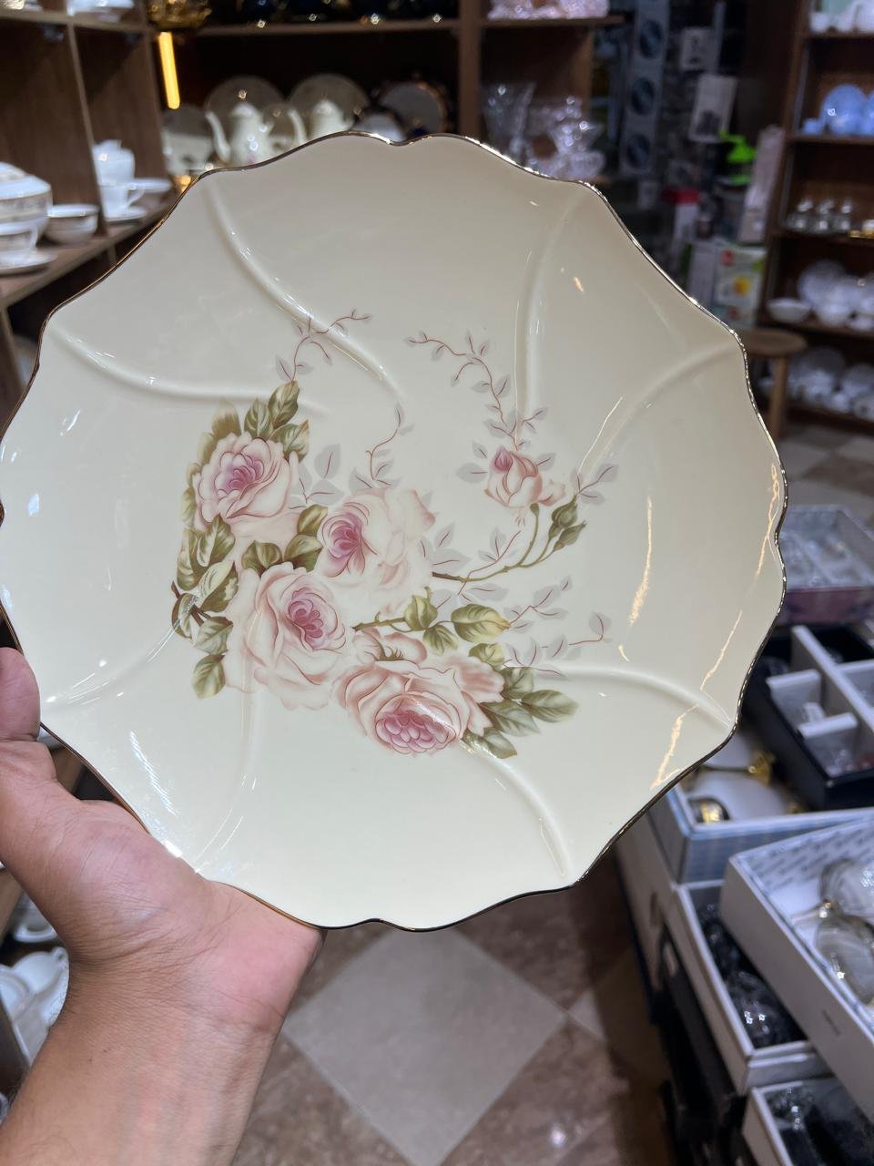 طقم شاي وجاتوه 24 قطعة، تصميمه راقي جداً، مزخرف بنقوش ورود وردية ساحرة ولمسات دهبية لامعة على الأطراف والمقابض تضيف لمسة ملكية تخلي سفرتك قطعة من القصور 👑.